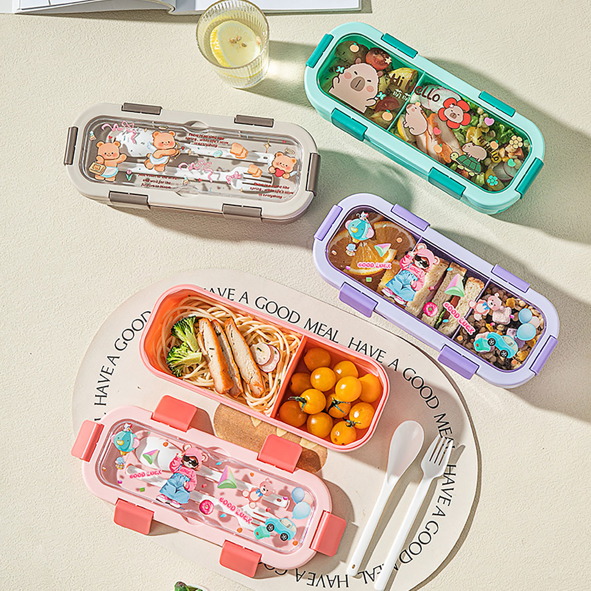 (印花款)愛悅長方形便當(dāng)盒兩格/三格可選 塑料款/不銹鋼款